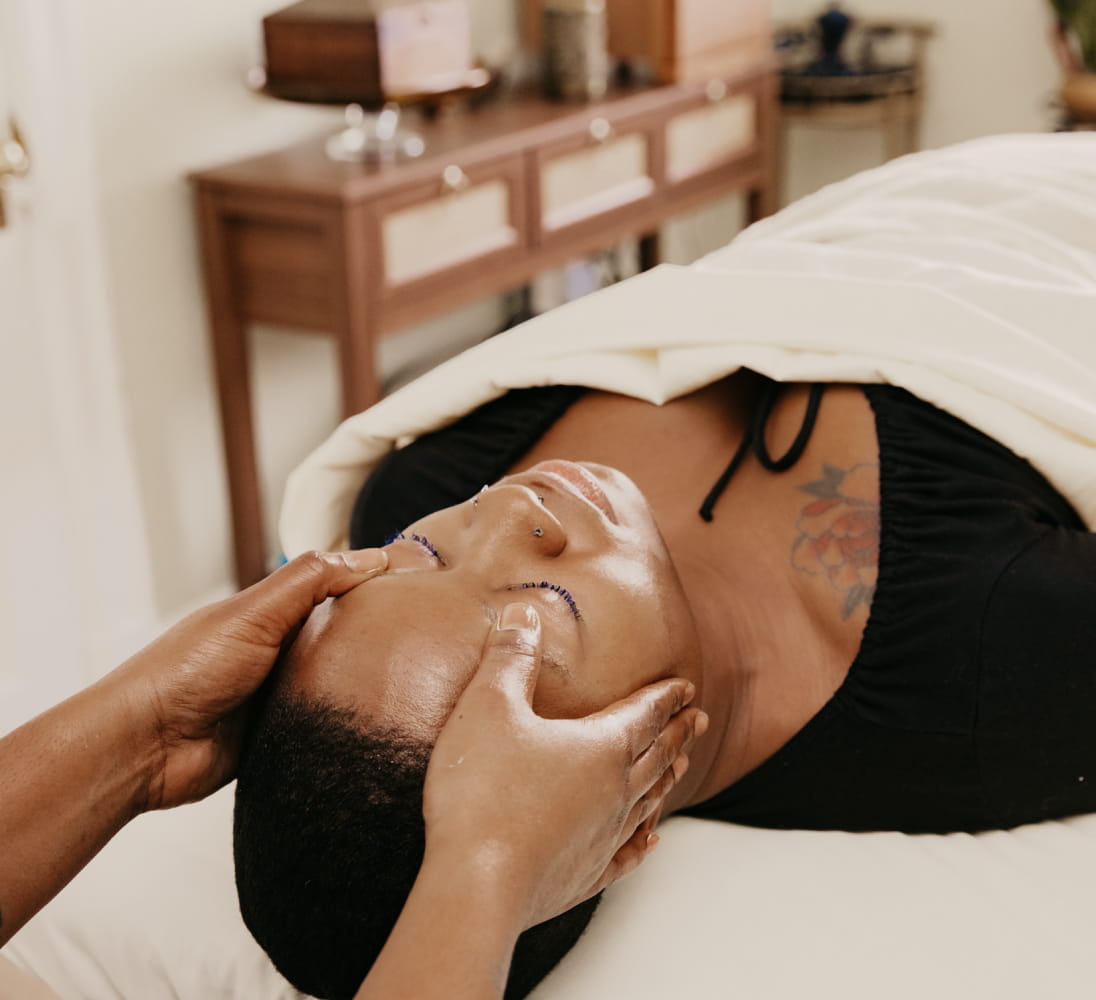 You arrive, we talk briefly about where your body is that day, and then the session is shaped around what you need — drawing from ashiatsu, Thai massage, cupping, and Reiki to support deep relaxation and nervous system regulation.