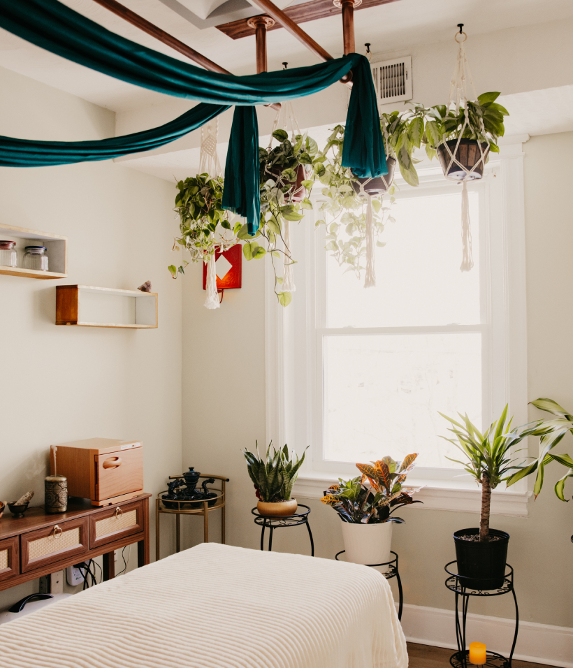 Outside, the world moves quickly. Inside, the intention is different. The room is designed to feel calm, grounded, and supportive — a place where your nervous system can begin to slow down the moment you walk in.